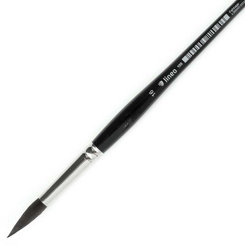 Okrągły pędzel akwarelowy z linii Lineo Seria 103 wykonany jest z wyselekcjonowanego włosia wiewiórki. Producent zastosował bezszwową niklową skuwkę oraz krótki, czarno lakierowany trzonek. Dzięki naturalnym właściwościom włosia wiewiórki oraz pełnemu brzuścowi pędzel dobrze chłonie i utrzymuje dużą ilość farby. Charakteryzuje się precyzyjną końcówką, zapewniającą wyjątkowy komfort i jakość malowania. Pędzel jest tradycyjnie wykonywany ręcznie w Niemczech.