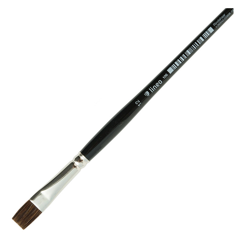 Płaski pędzel z naturalnym włosiem bydlęcym serii 106 marki Lineo. Krótki lakierowany trzonek. Bezszwowa skuwka. Przeznaczony do farb wodnych. Więcej szczegółów