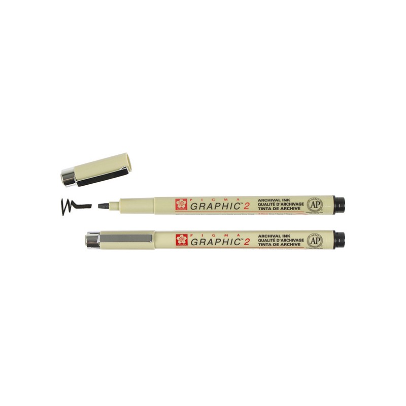 Pisaki Pigma Graphic to kolejny produkt z gamy japońskiego producenta - firmy Sakura. Oparty o unikalny tusz na bazie wody Pigma Ink, który oferuje nasycone, transparentne kolory i zdecydowanie większą trwałość, odporność na działanie wody, światła i substancji chemicznych niż tradycyjny atrament. Po wyschnięciu permanentne, nie rozmazują się. Specjalna formuła tuszu sprawia, że kolor nie przebiję na drugą stronę nawet najcieńszego arkusza papieru. To, co odróżnia Pigma Graphic od pozostałych modeli pisaków, to zróżnicowane końcówki: okrągła (bullet) o średnicy 1mm oraz dwie płaskie i sztywne (chisel), kreślące linie o szerokości 2mm i 3mm.