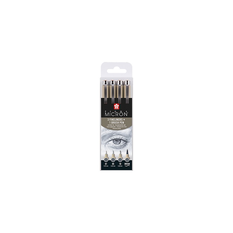 Cool Gray Pigma Set – komplet 4 pisaków serii Pigma marki Sakura. 3 cienkopisy i 1 brush pen.