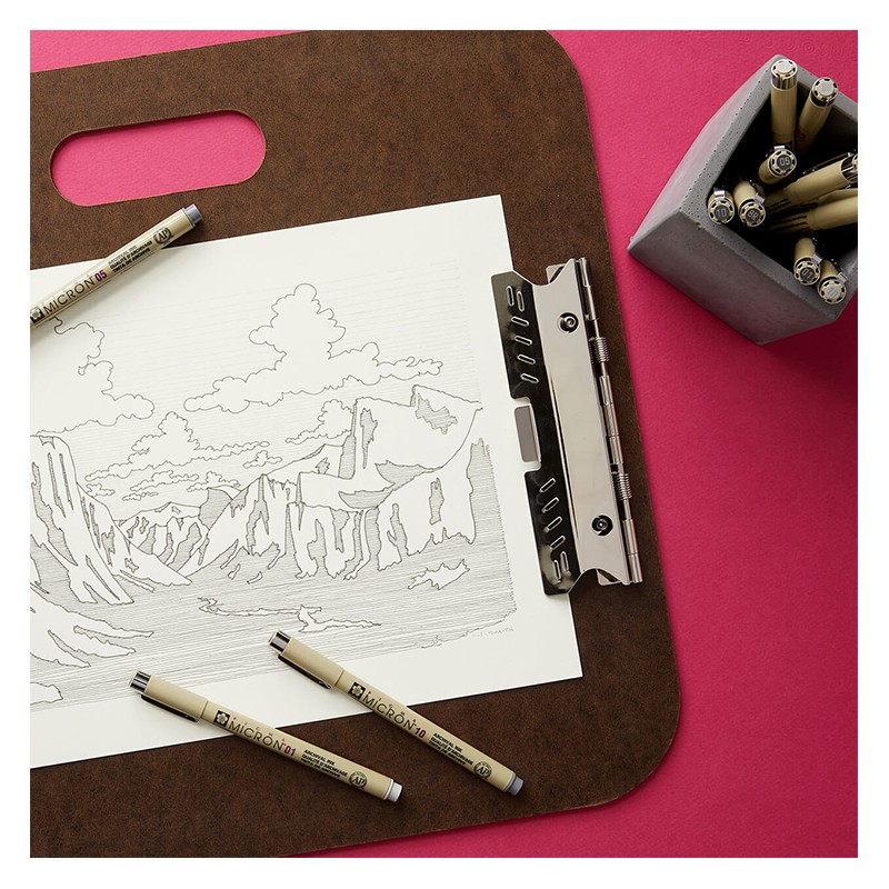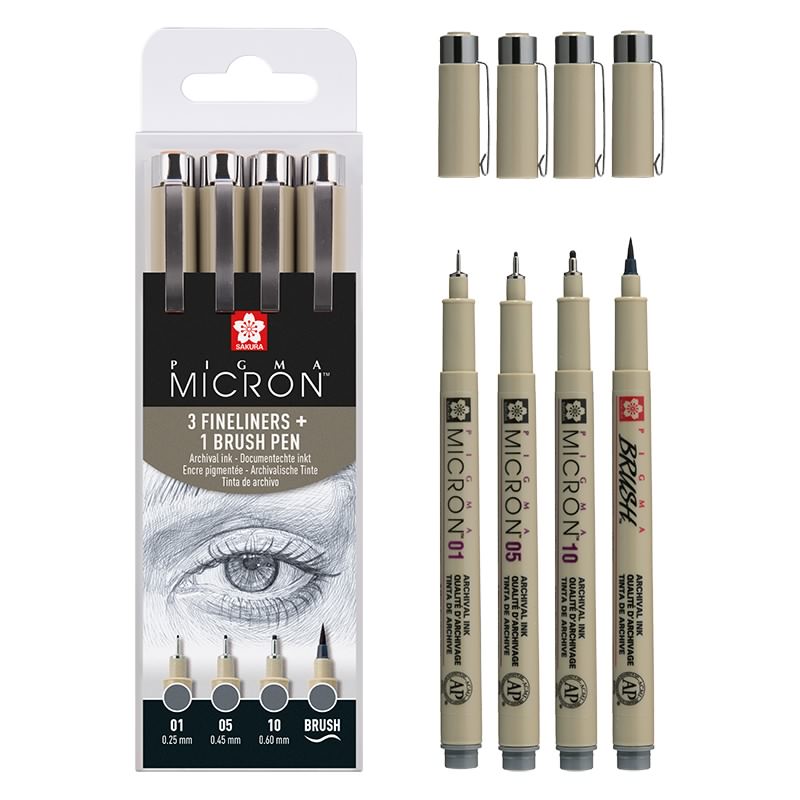 Profesjonalne, precyzyjne cienkopisy Pigma Micron japońskiej marki Sakura. Debiutując w 1982 roku były pionierskim rozwiązaniem, opartym o tusze na bazie wody. Przez ponad 30 lat pisaki podlegały stałym udoskonaleniom w oparciu o opinie i doświadczenia użytkowników z całego świata, co gwarantuje Państwu zakup artykułów o wysokiej jakości. Tusz Pigma Ink oferuje niezawodność, doskonałą odporność na środki chemiczne, wodę i blednięcie oraz trwałość na różnych rodzajach papieru. Odpowiednia pigmentacja to nasycone, transparentne kolory, zaś specjalna formuła tuszu gwarantuje, że linie nie będą przebijać na drugą stronę nawet najcieńszego arkusza papieru. Budowa końcówki dozującej tusz jest tajemnicą firmy - zapewnia doskonałą kontrolę, lekkość kreślenia i idealny przepływ pod każdym kątem. Pigma Micron wyznacza standardy dla pozostałych produktów tej kategorii.