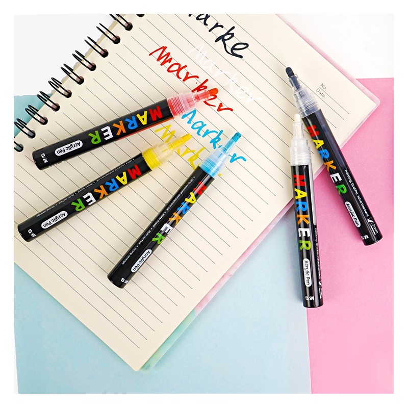 Marker akrylowy marki M&G. Przeznaczony do stosowania na różnych powierzchniach, takich jak: drewno, papier, płótno, plastik, metal. Końcówka 1-2 mm. Więcej szczegółów
