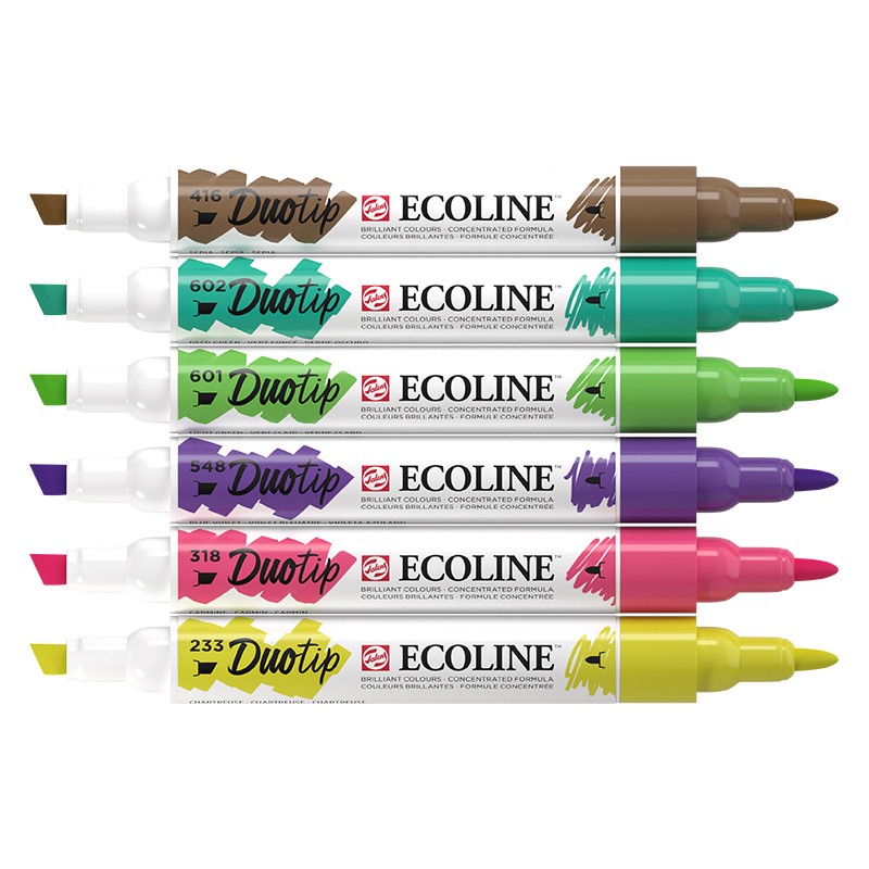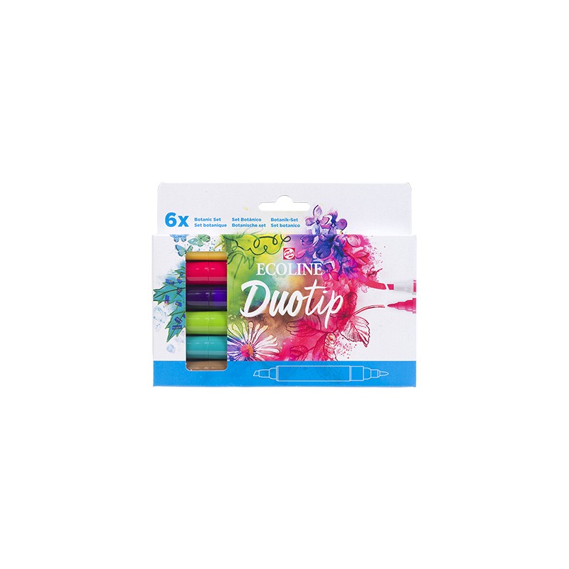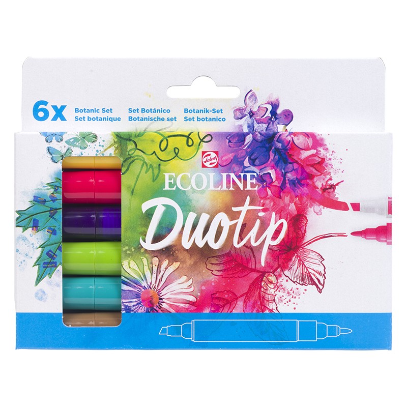 Botanic Set, pisaki Duo Tip Ecoline Talens – zestaw 6 dwustronnych pisaków w botanicznej gamie kolorystycznej. Kartonowe opakowanie.
