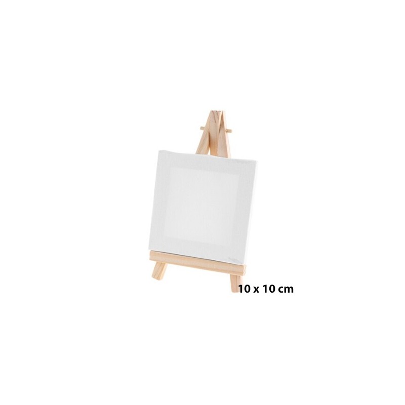 Podobrazie bawełniane 10 x 10 cm wraz z mini sztalugą trójnożną marki Artix.