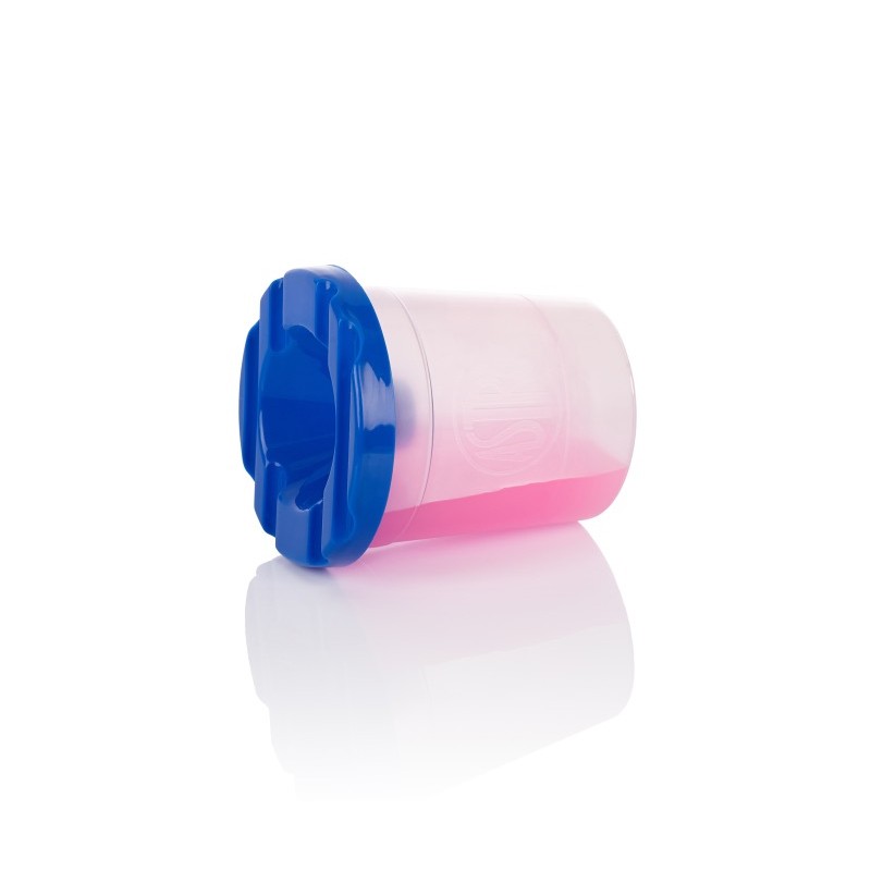 Plastikowy kubek–niekapek przeznaczony do płukania pędzli. Posiada specjalną pokrywkę z blokadą wylania, która uniemożliwia wydostanie się wody w przypadku przewrócenia kubeczka. Pojemnik wykonany z tworzywa które łatwo utrzymać w czystości. Dodatkowo pokrywka posiada 4 żłobienia na pędzle.