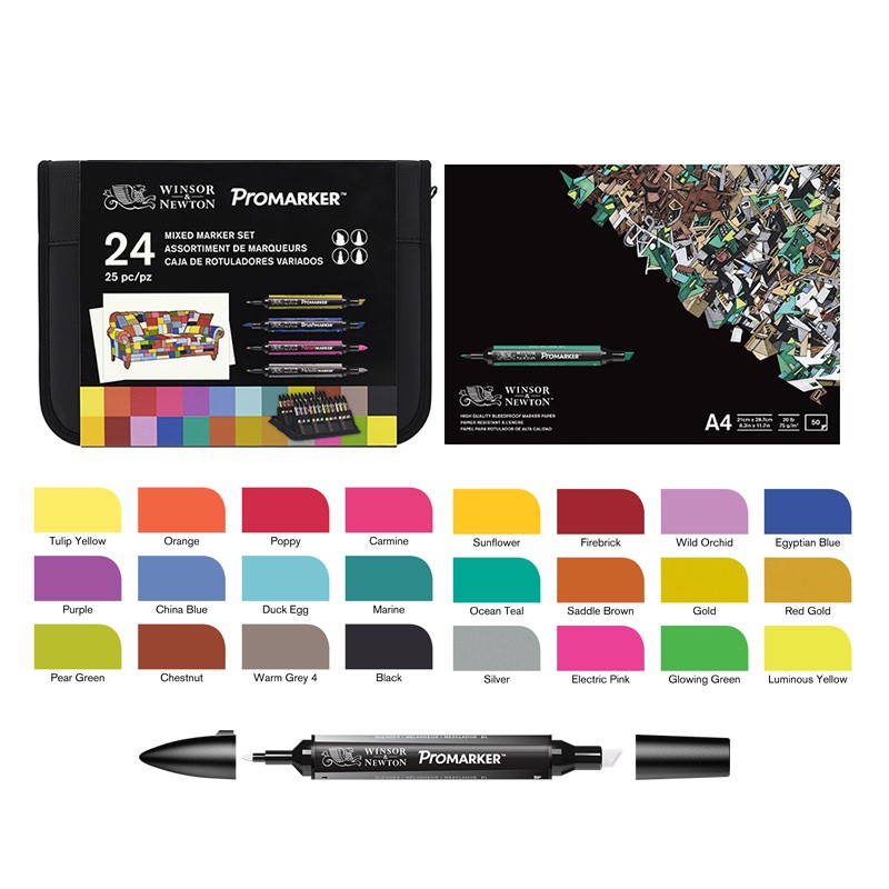 Mixed marker Complete Set A4 - wszystko, czego potrzebujesz, aby rozpocząć pracę z najpopularniejszym pisakiem na świecie - Promarkerem od Winsor&Newton.