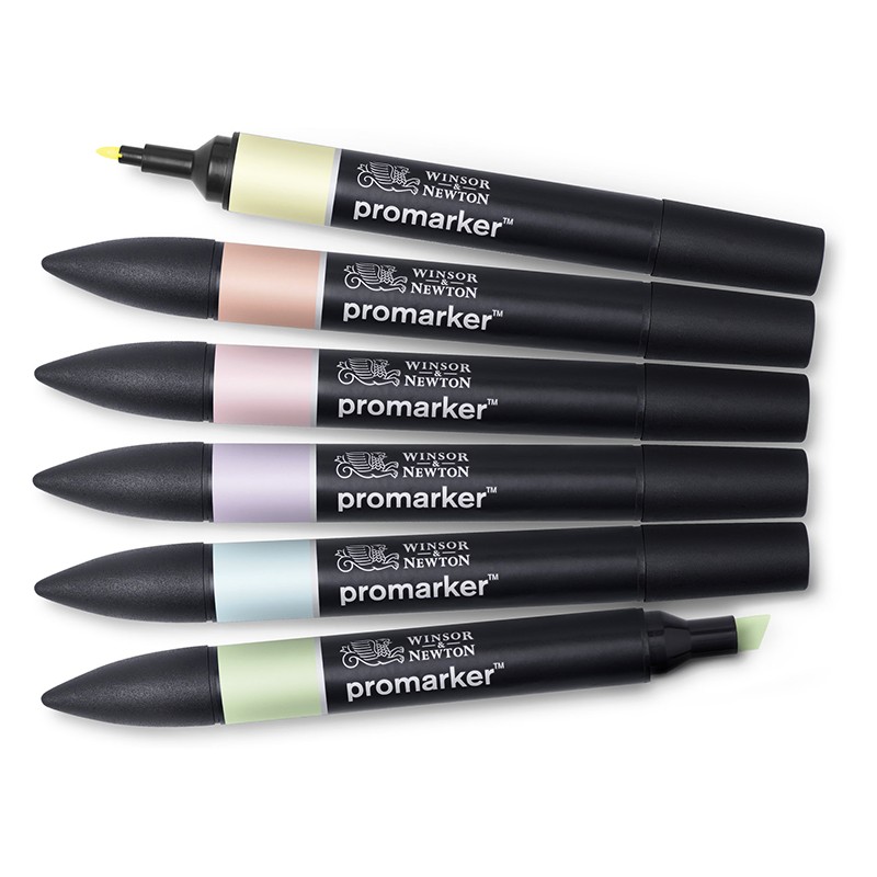 Seria Promarker to nietoksyczne pisaki na bazie alkoholu, wyróżniające się trwałością i odpornością na działanie światła i wody. Występują w 148 kolorach, w odcieniach od cielistych i pastelowych, po intensywne i jaskrawe. Z powodzeniem można je stosować na różnorodnych powierzchniach, m. in. na papierze, kartonie, drewnie, plastiku, a nawet metalu. Kolory transparentne pozwalają na tworzenie różnorodnych przejść, sprawdzą się idealnie w kombinacjach z cieniowaniem i świetnie mieszają, by tworzyć jeszcze szersze spektrum barw. Każdy pisak posiada dwie końcówki: szeroką, do wypełniania dużych powierzchni, rysowania tła, a także cienką, do krawędzi, konturów i detali.
