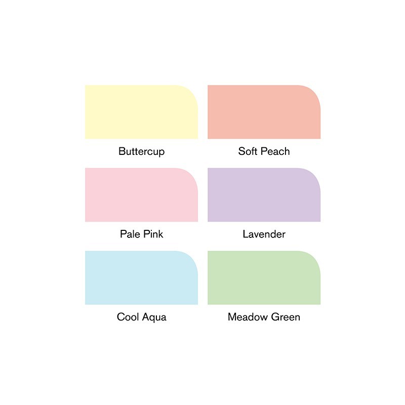Zestaw Pastel Tones zawiera kolory: soft peach, buttercup, meadow green, cool aqua, lavender, pale pink. Całość umieszczona w plastikowym blistrze.