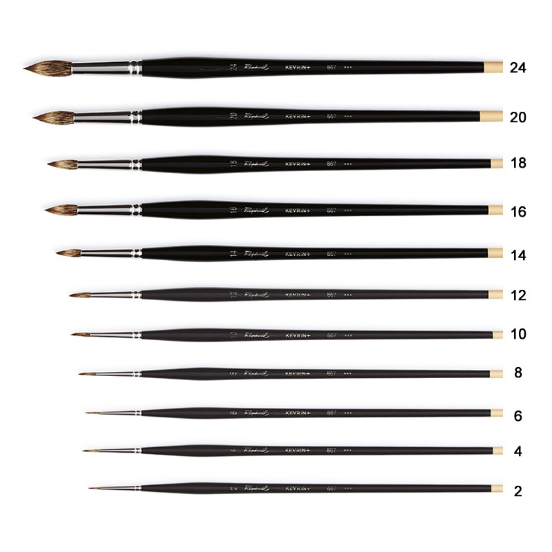 Pędzel serii 867 Kevrin+ marki Raphael. Okrągły pędzel do farb olejnych i akrylowych. Długi, drewniany trzonek, niklowana skuwka. Więcej szczegółów