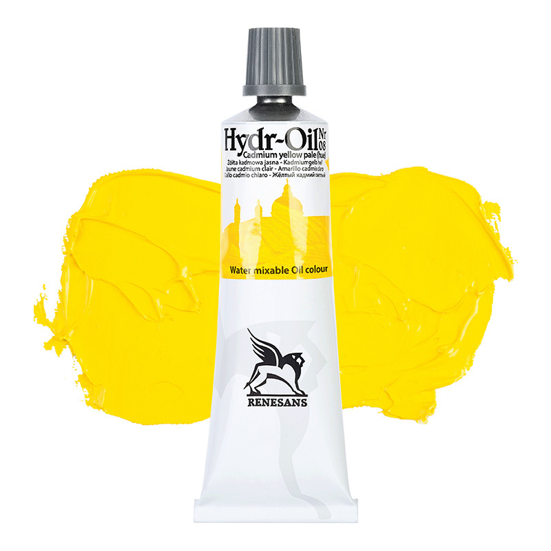 08 Żółta Kadmowa Jasna, Hydr-Oil Renesans – farba olejna wodorozcieńczalna, tuba 60 ml. Pigmenty: PW6 / PY3 / PY74