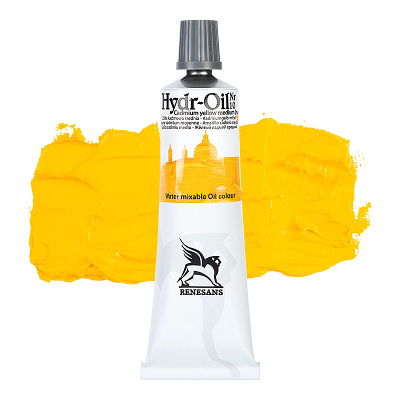 10 Żółta Kadmowa Średnia, Hydr-Oil Renesans – farba olejna wodorozcieńczalna, tuba 60 ml. Pigmenty: PW6 / PY83 / PY74