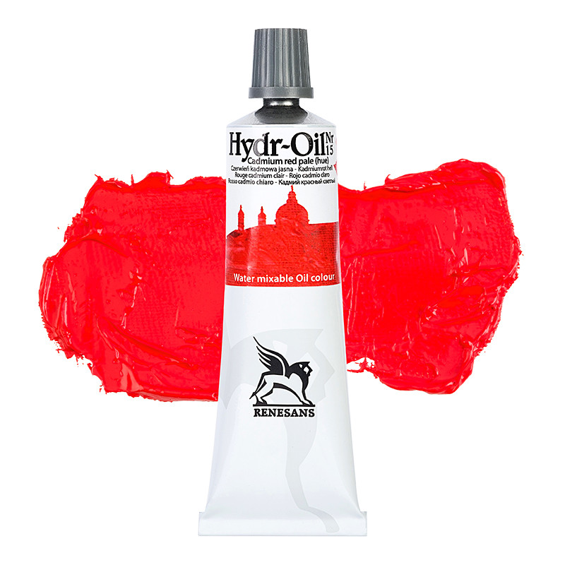 15 Czerwień Kadmowa Jasna, Hydr-Oil Renesans – farba olejna wodorozcieńczalna, tuba 60 ml. Pigmenty: PY83 / PR254