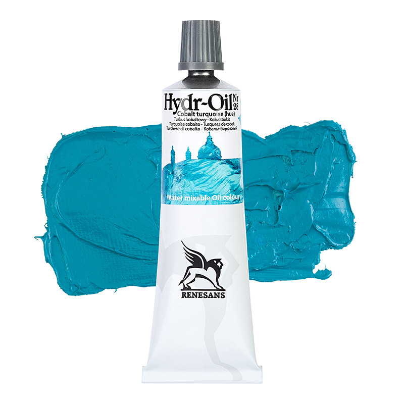 28 Turkus Kobaltowy, Hydr-Oil Renesans – farba olejna wodorozcieńczalna, tuba 60 ml. Pigmenty: PW7 / PB15:3 / PG7