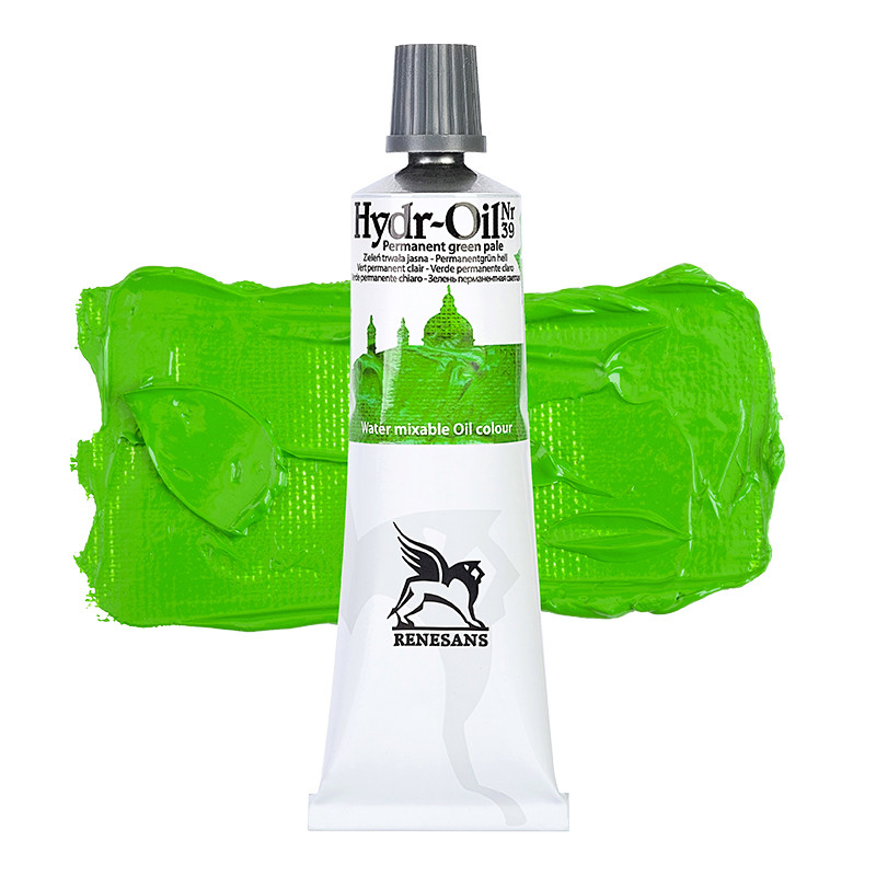 39 Zieleń Trwała Jasna, Hydr-Oil Renesans – farba olejna wodorozcieńczalna, tuba 60 ml. Pigmenty: PY74 / PG7 / PY3