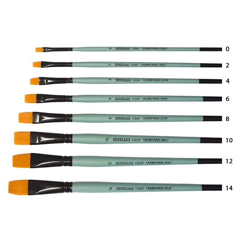 Pędzel serii 1006F nr 0. Syntetyczny, płaski pędzel marki Renesans.