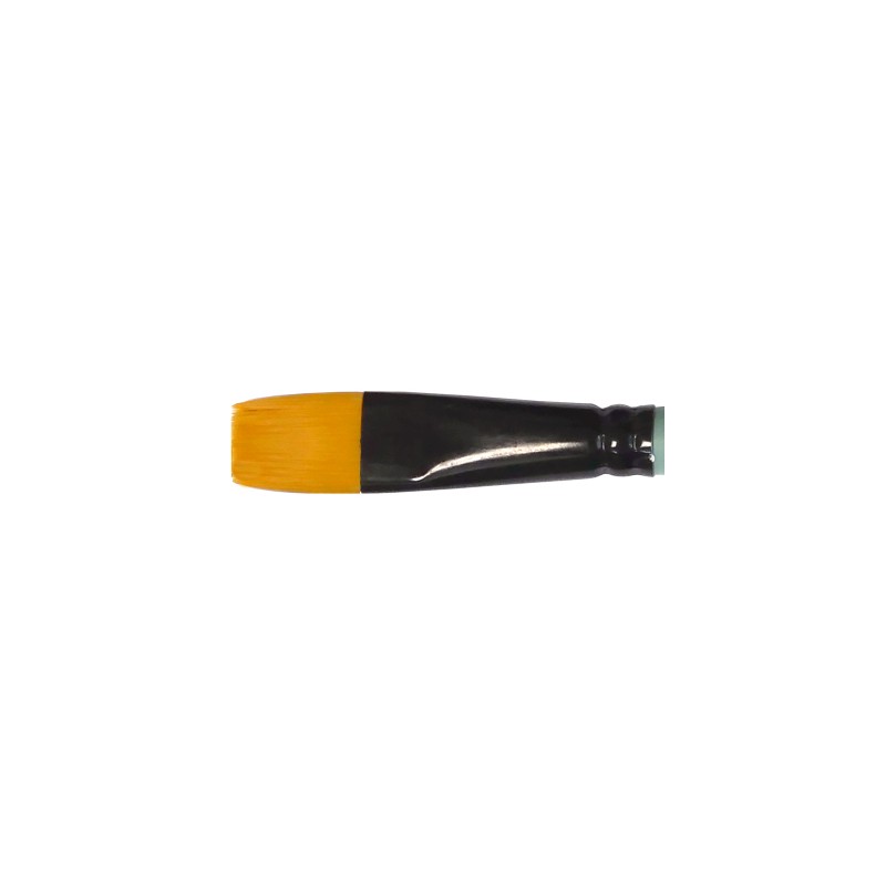 Pędzel z syntetycznym, miękkim, złotym włosiem. Do farb akrylowych, tuszu, gwaszy i temper. Krótka, drewniana rączka lakierowana na zielono. Metalowa skuwka.