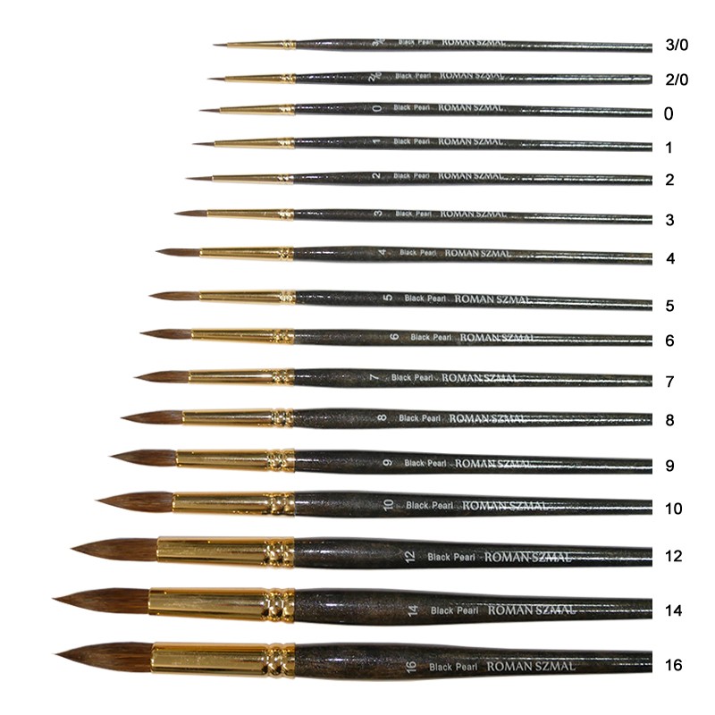 Pędzel serii Black Pearl nr 8. Okrągły pędzel akwarelowy marki Roman Szmal Art.