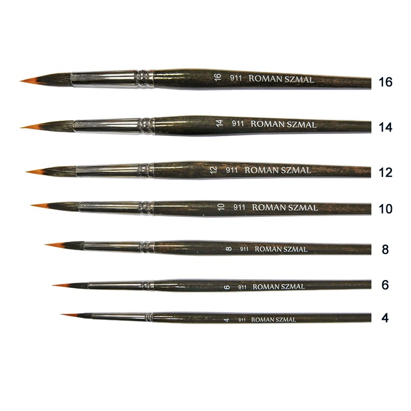 Pędzel Roman Szmal Art serii 911 rozmiar 6. Mix włosia naturalnego z syntetycznym. Pędzel przeznaczony do malowania farbami akwarelowymi. Więcej szczegółów