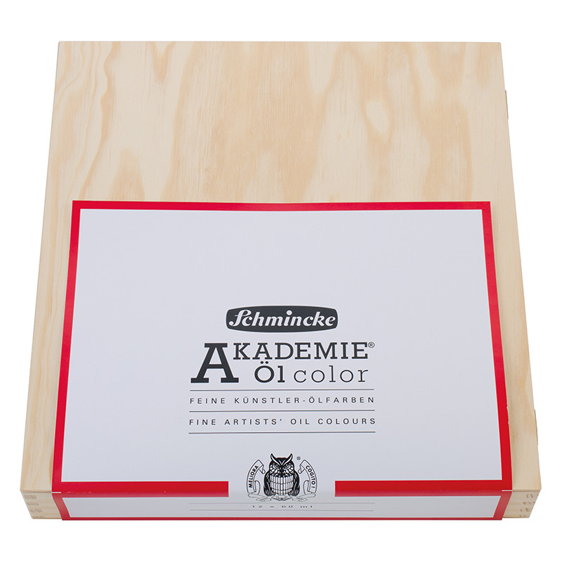 Farby olejne serii Akademie marki Schmincke, 12 tubek po 60 ml w drewnianej kasecie. Gęsta farba o gładkiej konsystencji i optymalnym czasie schnięcia. Więcej szczegółów