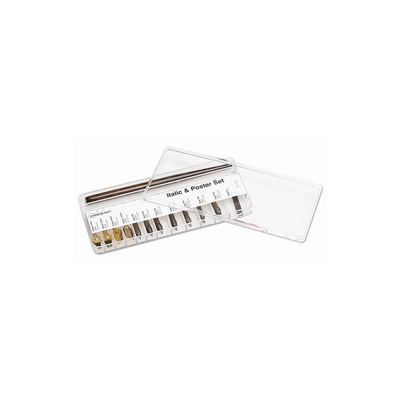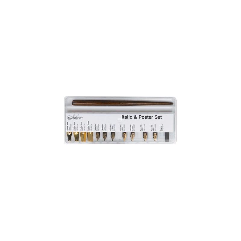 Italic & Poster Set to wszystko, czego potrzebujesz, aby tworzyć niezwykle elegancką korespondencję i inne zdobienia. Dzięki swej różnorodności, ma szanse trafić w oczekiwania wielu użytkowników. Przystosowane do prac z użyciem różnego rodzaju tuszy, akwareli, a nawet gwaszy i akryli!