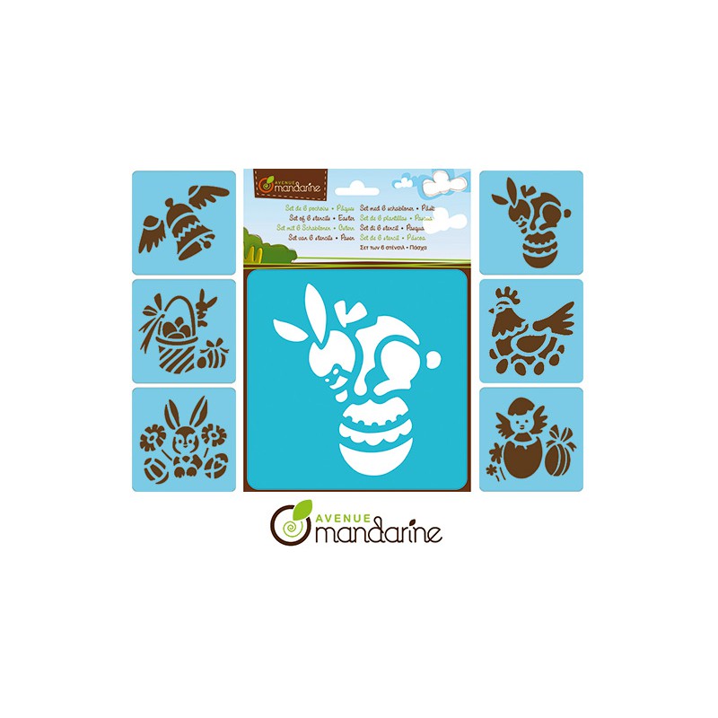 Prezentowany komplet to "Easter - Wielkanoc" , zawierający szablony takie jak: królik na jajku, dzwonek, koszyk, kura, kurczak i królik. Do malowania polecamy pędzle z włosia syntetycznego, dostępne w kategorii "Pędzle i szpachelki", a także dedykowane zestawy pędzli znajdujące się w kategorii "Szablony"