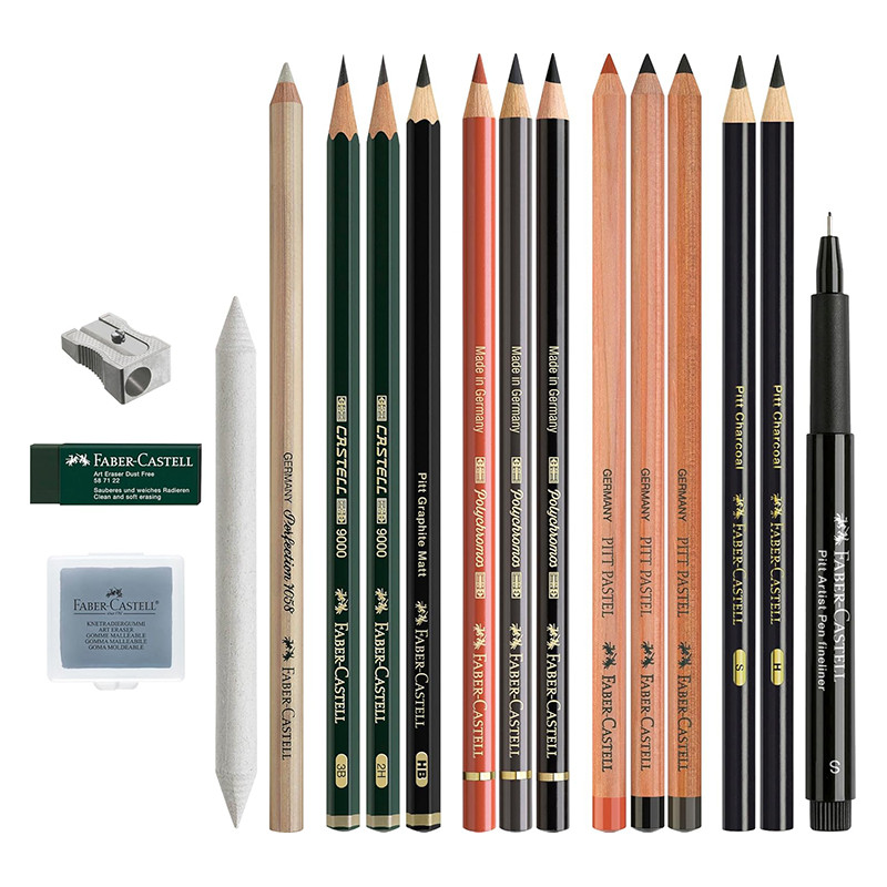 Profesjonalny zestaw szkicowo-rysunkowy Discovery Set firmy Faber Castell, 17 elementów.