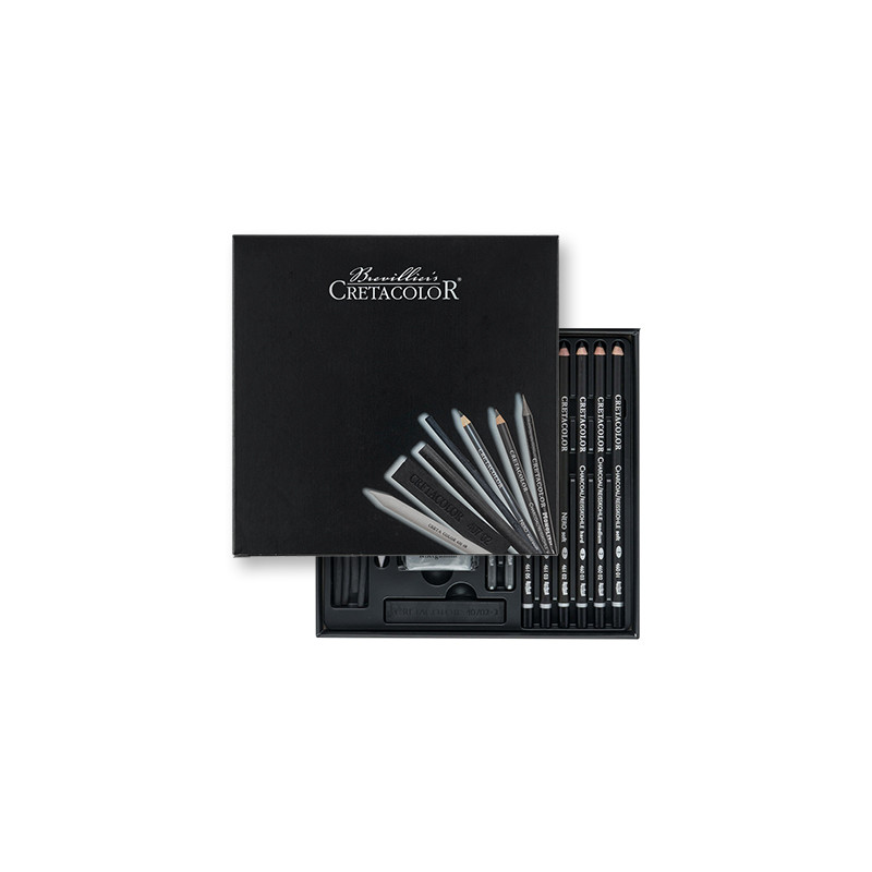 Zestaw szkicowy Black Box marki Cretacolor. 20-elementowy komplet do szkicu i rysunku w odcieniach czerni. Całość zamknięta w drewnianej kasetce. Więcej szczegółów