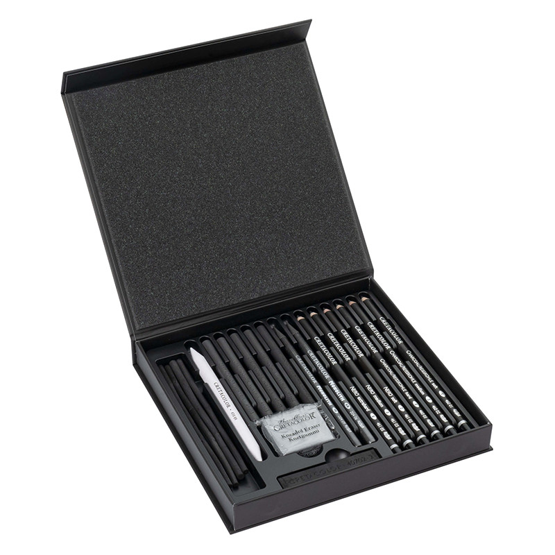 Black Box Cretacolor – zestaw do rysunku i szkicowania – 20 elementów w eleganckim czarnym etui z drewna.