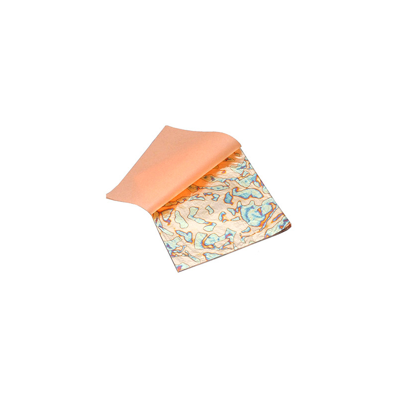 Arkusze oksydowanego szlagmetalu w książeczce, każdy arkusz przedzielony jest przekładką. Płatki nadają się do złocenia większości powierzchni takich jak drewno, ceramika, kamień, szkło itp. Płatki w rozmiarze 14 x 14 , 25 arkuszy w opakowaniu. Wszystkie płatki w opakowaniu pochodzą z jednej partii dzięki czemu utrzymane są w tej samej tonacji kolorystycznej, natomiast każdy płatek ma inny wzór.
