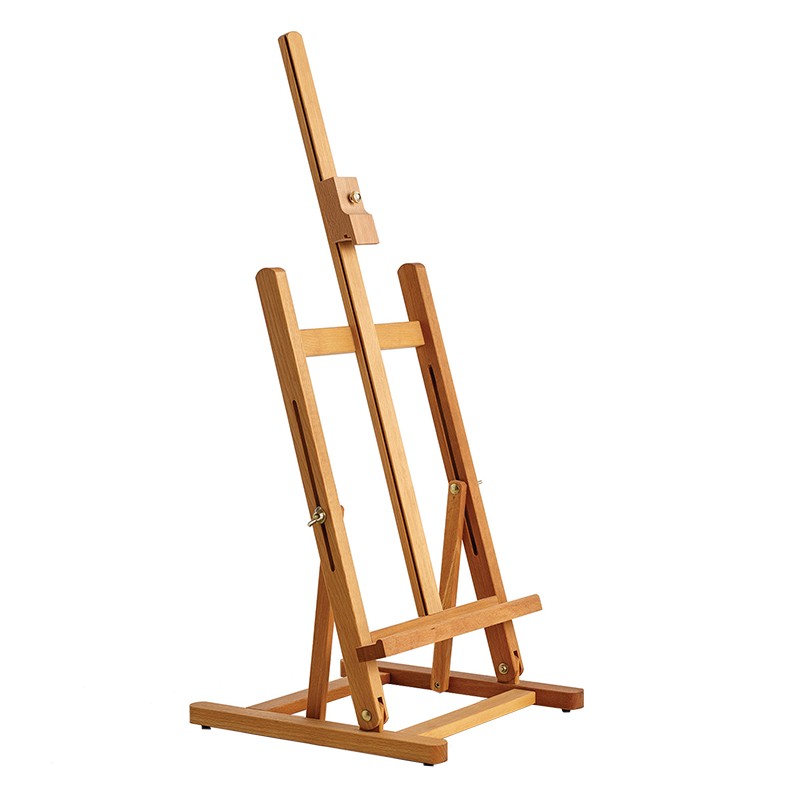 Stołowa sztaluga przeznaczona do malarstwa olejnego, akrylowego i rysunku. Stabilna konstrukcja oparta na podstawie w kształcie litery H zapobiega chybotaniu, a przykręcone gumowe nóżki uniemożliwiają ślizganie się po powierzchni blatu. Wykonana z sezonowanego drewna bukowego impregnowanego olejem. Sztaluga jest w całości zmontowana i gotowa do użytku.