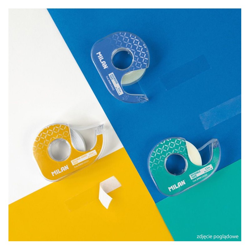 Dwustronna taśma samoprzylepna marki Milan. Taśma klejąca, która sprawdzi się zarówno w biurze jak i w szkole czy pracowni artystycznej. Taśma jest kompatybilna z dyspenserem tej samej marki.