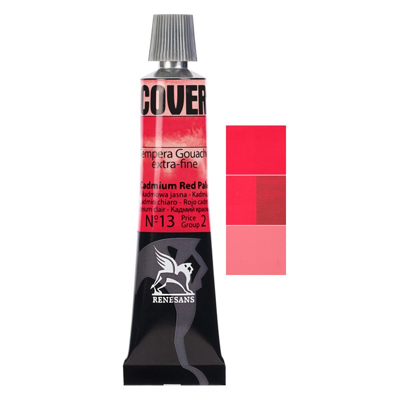 13 Czerwień Kadmowa Jasna / Cadmium Red Pale – farba temperowa COVER marki Renesans, 20 ml.