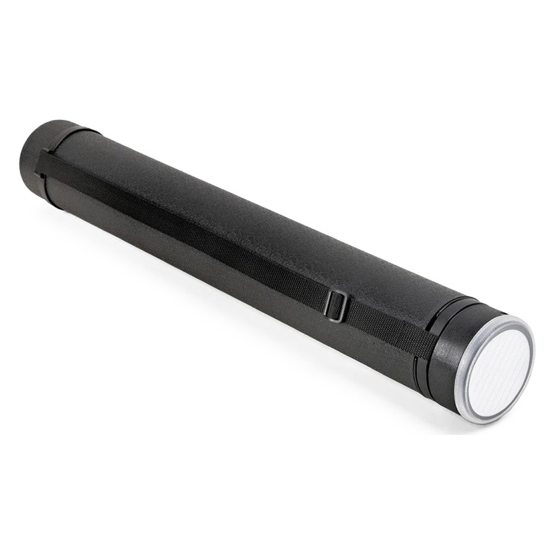 Poręczna i lekka regulowana tuba na prace. Wykonana z wytrzymałego, czarnego plastiku, wyposażona w pasek z regulacją. Wyjściowa długość tuby to 62 cm, jej wydłużenie może odbywać się skokowo aż do 102 cm. Średnica wynosi 8.5 cm. Odkręcane wieko posiada etykietę do podpisu.