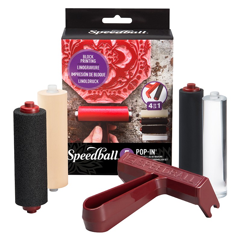 Komplet wymiennych wałków + rękojeść marki Speedball - Pop In Brayer Set.