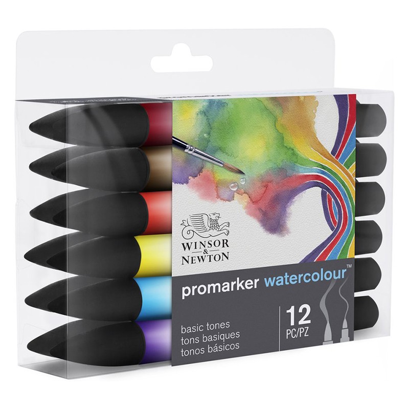 Basic Tones – zestaw dwustronnych pisaków akwarelowych Promarker Watercolour marki Winsor & Newton. 12 wodorozmywalnych kolorów w gamie podstawowej. Więcej szczegółów