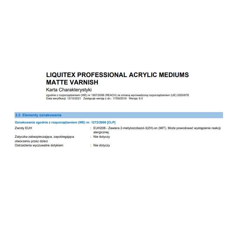 Matte varnish, werniks matowy do farb akrylowych amerykańskiej firmy Liquitex.Wodoodporny werniks akrylowy na bazie polimerów. Zapewnia wysoce trwałą Więcej szczegółów