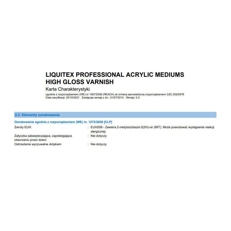 High gloss varnish, werniks błyszczący - wysoki połysk, do farb akrylowych amerykańskiej firmy LiquitexWodoodporny werniks akrylowy na bazie polimerów. Więcej szczegółów