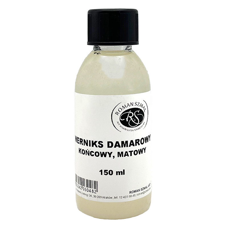 Werniks damarowy końcowy matowy do farb olejnych. Plastikowa buteleczka o pojemności 150 ml. Więcej szczegółów