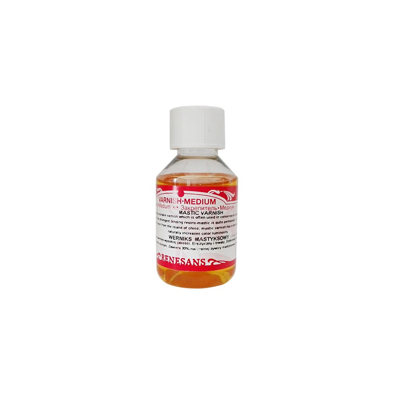 Wysokiej jakości, końcowy werniks mastyksowy marki Renesans, 100 ml. Trwały i elastyczny – zawiera 30% naturalnej żywicy mastyksowej z wyspy Chios. Więcej szczegółów