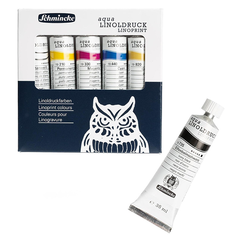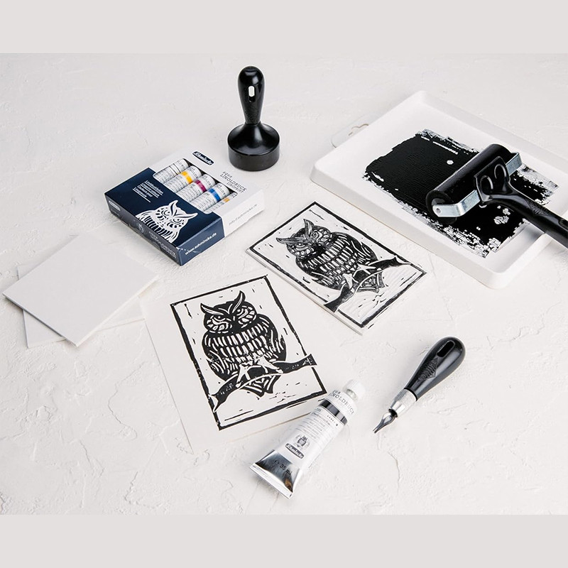 Zestaw 6 farb do linorytu Schmincke + akcesoria Essdee do tworzenia odbitek.