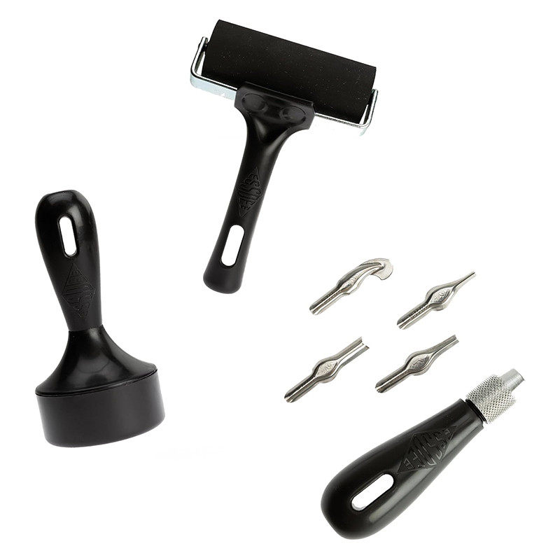 Zestaw do linorytu marki Schmincke & Essdee. Komplet zawiera wszystkie przybory do rozpoczęcia tworzenia odbitek linorytniczych. Więcej szczegółów
