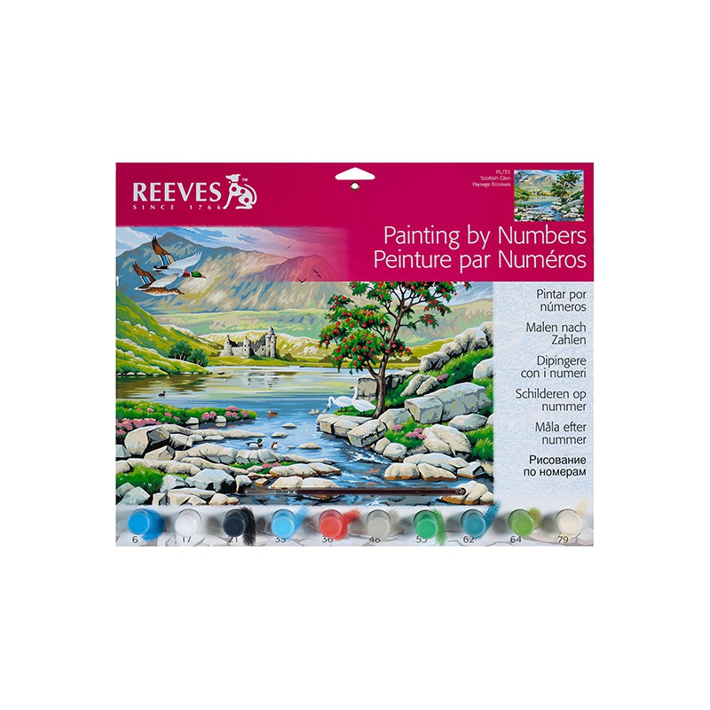 Zestaw do numeromalowania Scottish glen - szkocka dolina. Produkt z serii Painting by Numbers marki Reeves.
