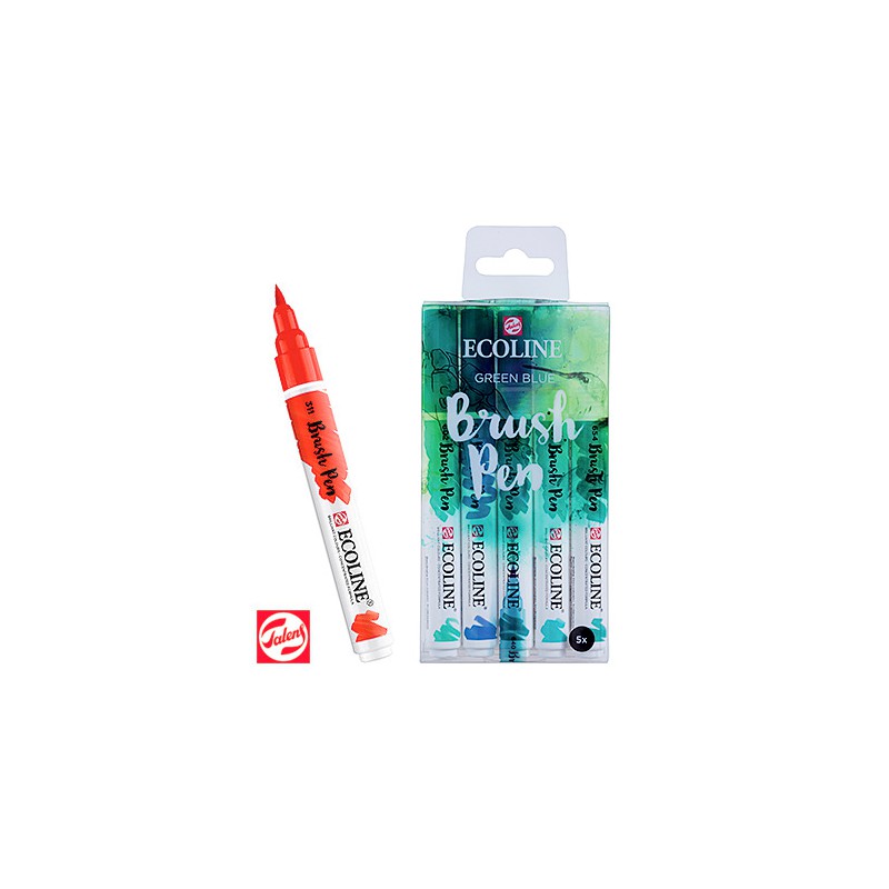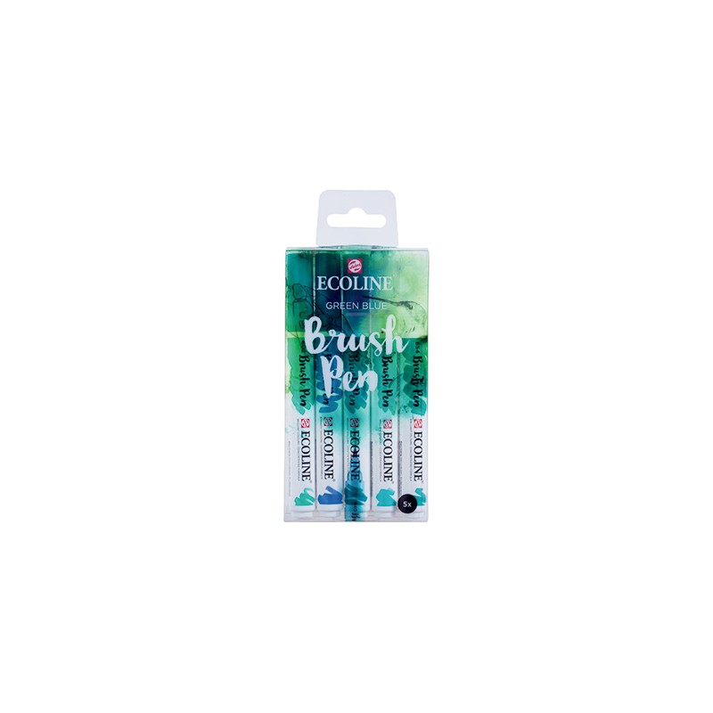 Ecoline Brush Pen marki Talens, zestaw GREEN BLUE - 5 kolorów.