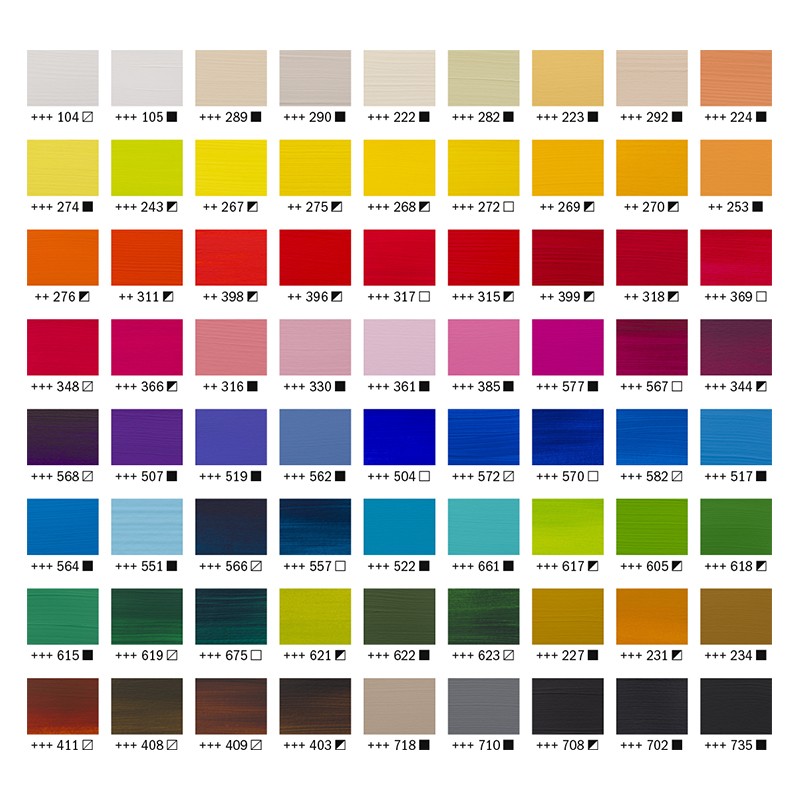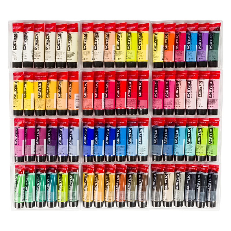 Komplet farb akrylowych popularnej serii Amsterdam holenderskiej marki Royal-Talens. 72 tubki o pojemności 20ml.