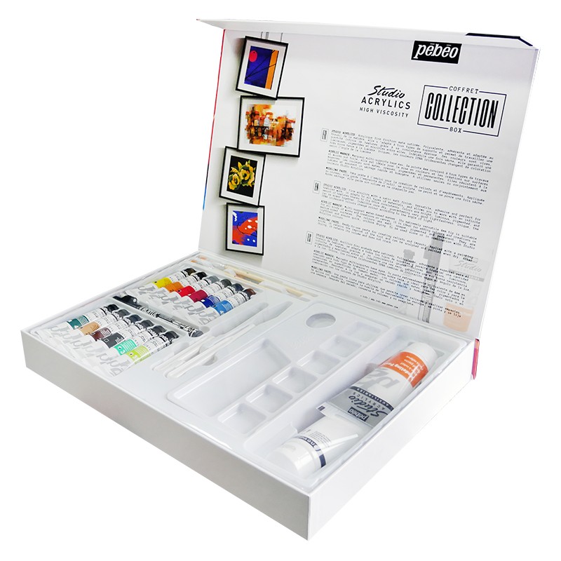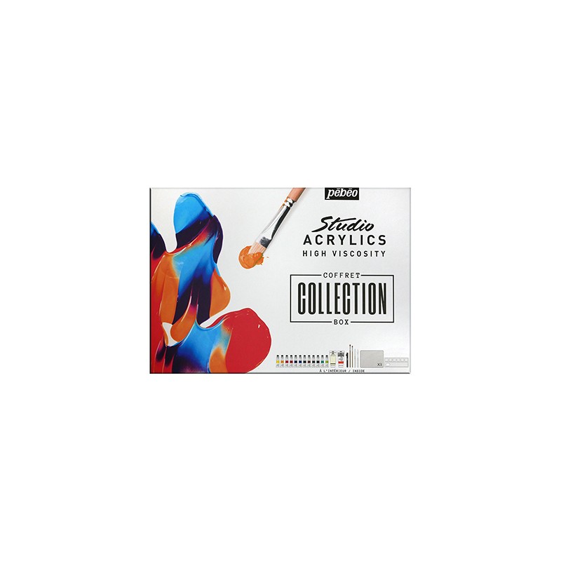 Studio Acrylics High Viscosity Collection Box - komplet wysokiej jakości farb akrylowych marki Pebeo. Paleta 12 kolorów w tubkach o pojemności 20ml + akcesoria. Więcej szczegółów
