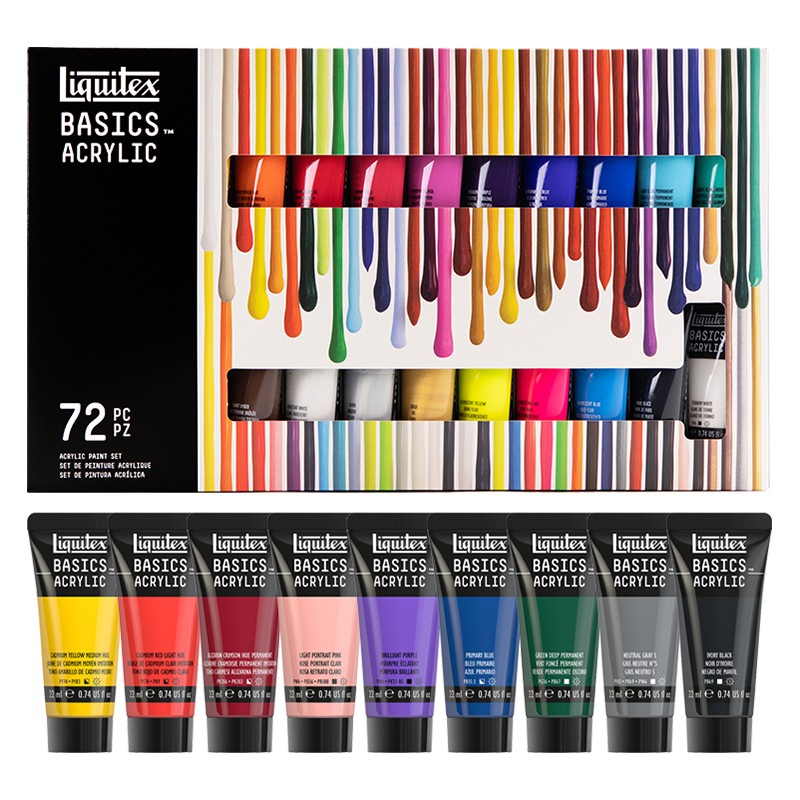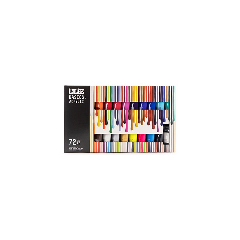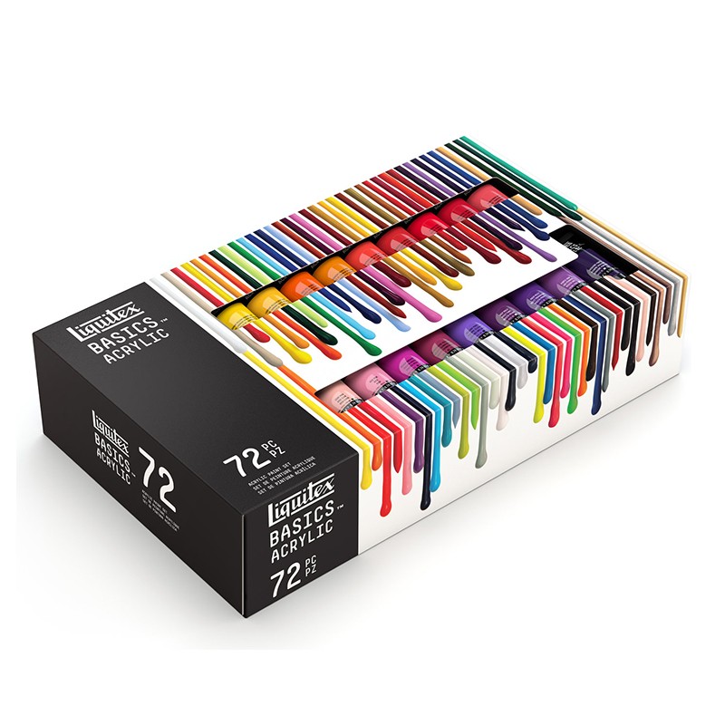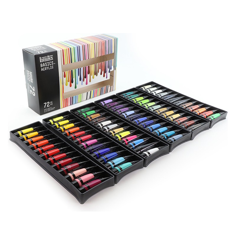 Zestaw farb akrylowych Basics Acrylics marki Liquitex, 72 kolory.