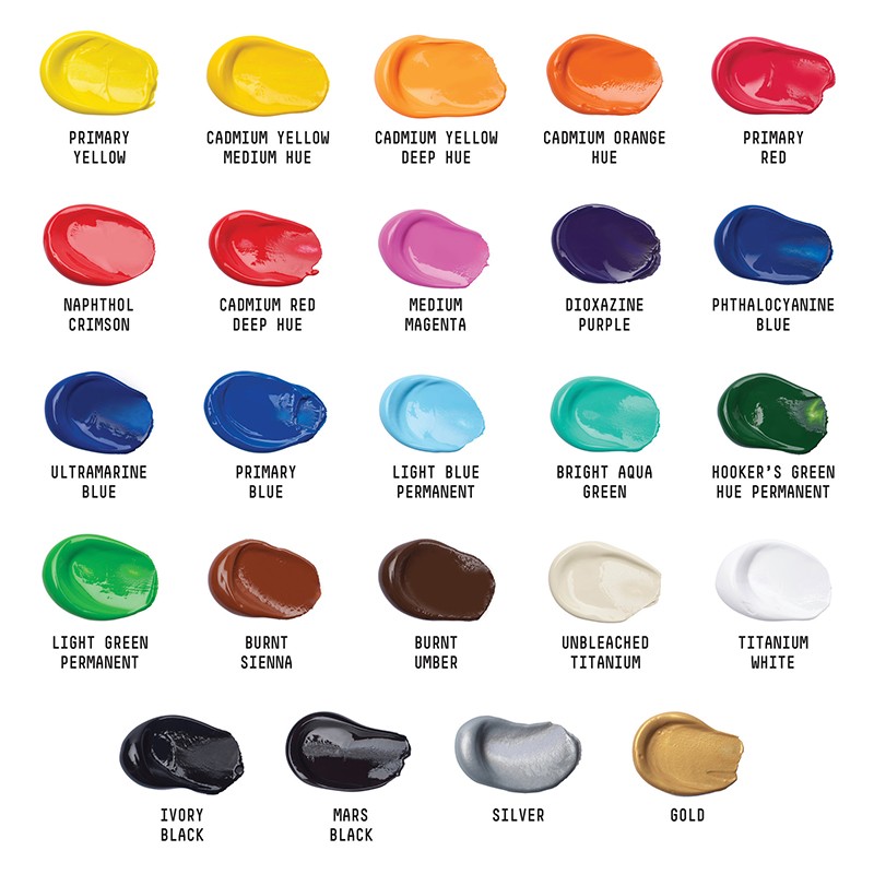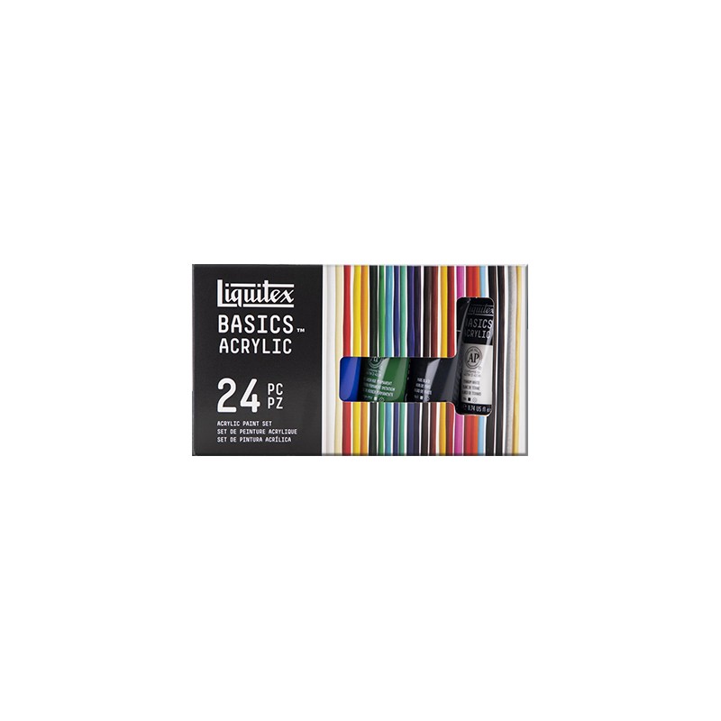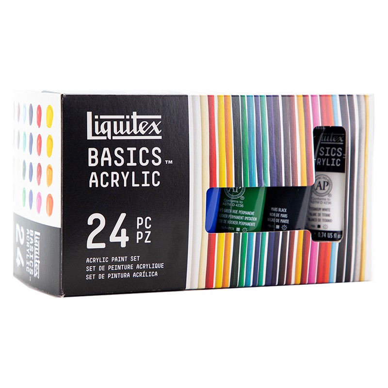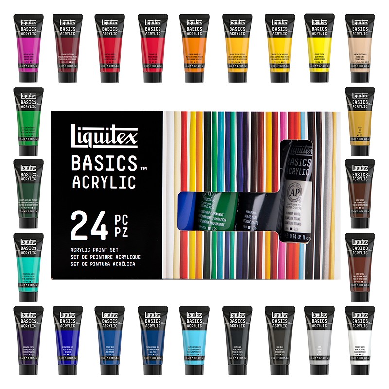 Zestaw farb akrylowych Basics Acrylics marki Liquitex, 24 kolory.