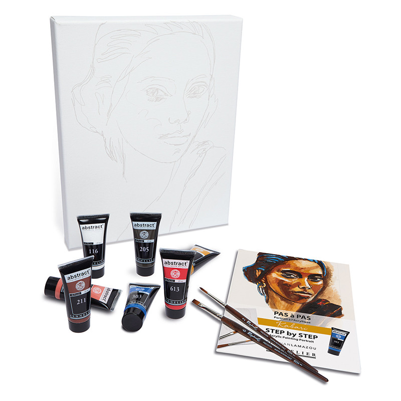 Komplet farb akrylowych Abstract Sennelier, stworzony we współpracy z artystą Titouanem Lamazou; zestaw umożliwia namalowanie portretu kobiety farbami akrylowymi. W pudełku znajduje się podobrazie 3D z wstępnie narysowanym szkicem (24 × 30 cm), 7 tubek farby akrylowej o pojemności 21 ml, dwa pędzle i broszura z instrukcjami krok po kroku.