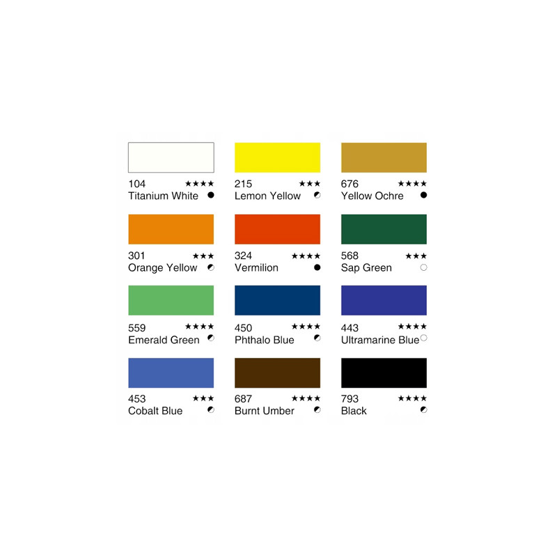 Zestaw 12 wodorozcieńczalnych farb akrylowych marki Phoenix. Przeznaczone do malowania na płótnie, kartonie, drewnie, gipsie itp. Po wyschnięciu wodoodporne. Pigmenty dobrej jakości gwarantują wysoką światłoodporność a zastosowane spoiwo zapewnia łatwe rozprowadzanie farby. Farby bardzo dobrze mieszają się między sobą. 12 kolorów umieszczono w tubkach o pojemności 12 ml. Zestaw zawiera syntetyczne pędzle na krótkich trzonkach oraz paletę malarską.