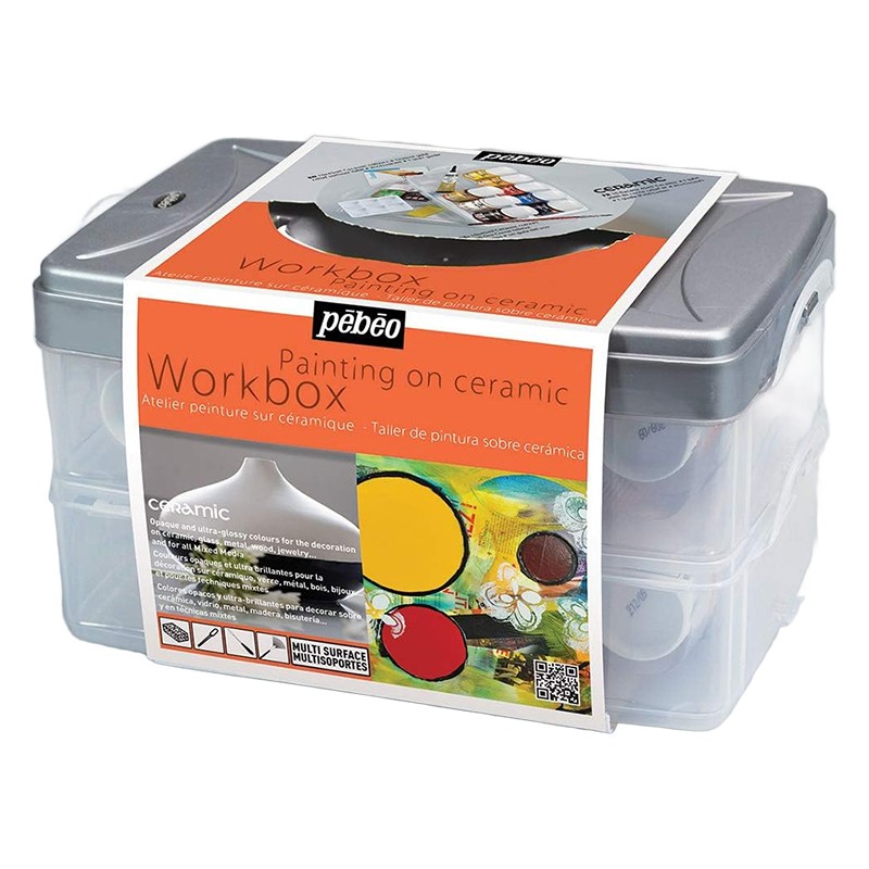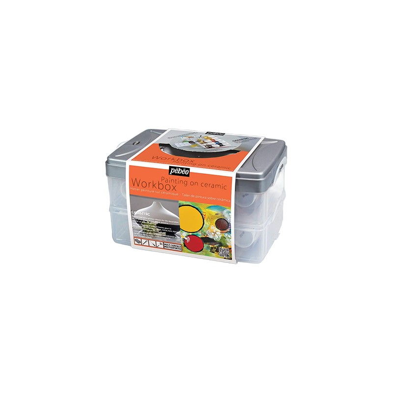 Zestaw farb do ceramiki, francuskiej firmy Pebeo. Komplet składa się z farb serii Ceramic, paletki, gąbki i pędzla. Więcej szczegółów
